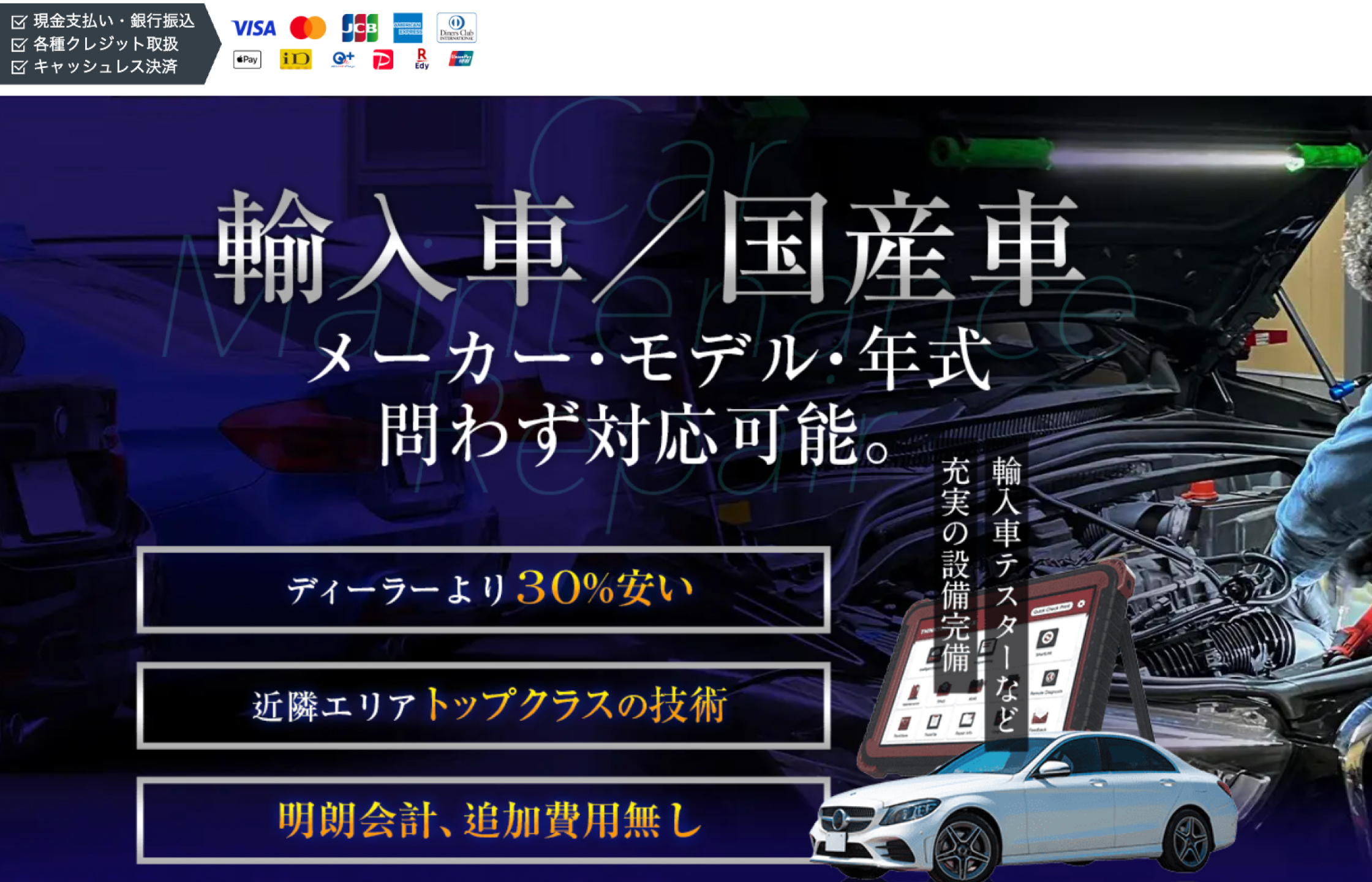 メルセデス・ベンツ/BMW/アウディ/フォルクスワーゲン/MINI/ポルシェ/ボルボ/ジャガー/ランドローバー/キャデラック/シボレー/GMC/リンカーン/フォード/クライスラー/ジープ/ダッジ/フィアット/アバルト/アルファロメオ/ルノー/プジョー/シトロエン